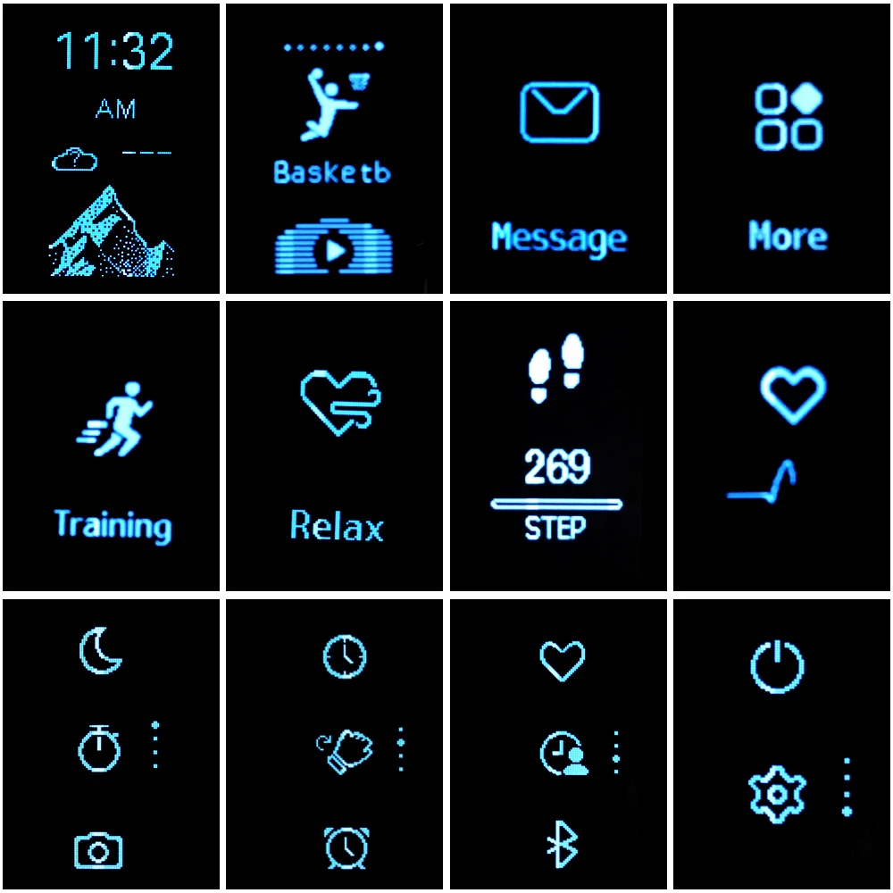 All-day activities recording| Auto sleep tracking| Full touch control function| Call alert+Hang up| Weather alert| Music control| Remote shoot| SMS/SNS alert| Sedentary alert