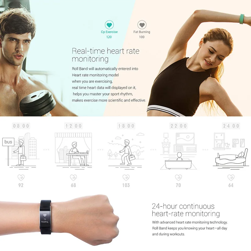 With advanced heart rate monitoring technology. Roll Band keeps your knowing your heart-all day and during workouts.