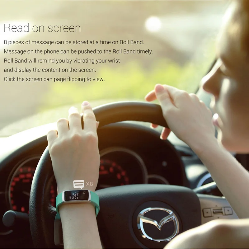Display Call ID, Roll Band shows your incoming calls and vibrates your wrist, even in a noisy environment, you never miss important calls, to help you take control of your day and your schedule. You can also slide the screen to reject a call convenient and efficient.