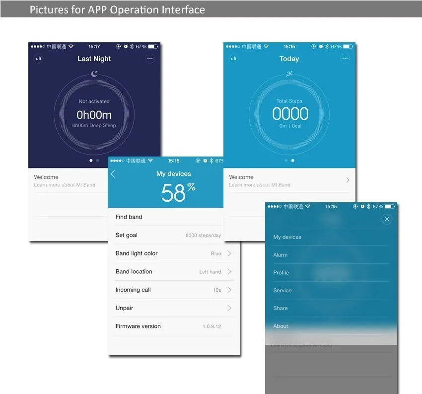 - Function: Passometer,Call Reminder,Message Reminder,Fitness Tracker,Sleep Tracker,Remote Control