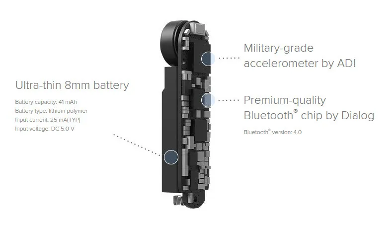 - With a Dialog 4.0 bluetooth chip, ADI sensor
